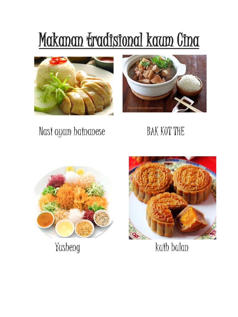 Makanan Tradisional Malaysia Kaum Cina from 2.bp.blogspot.com Sambutan tahun baru cina adalah satu tradisi yang sering dinanti nantikan saban tahun oleh masyarakat cina di seluruh dunia termasuklah di malaysia. Kuetiau ialah makanan tradisional masyarakat cina. Makanan kumpulan etnik dari sabah sarawak sepertinya umai, linut, kepasuh ayam turut menjadi kepilihan bagi masyarakat dari kepelbagai etnik yang secara tidak langsung telah menyumbang kepada kesepaduan sosial 1 makanan tradisional kaum melayu 2.1 juadah sajian harian kaum melayu malaysia merupakan negara bertuah yang memiliki berbilang kaum. Yusheng atau yee sang (yúshēng) ialah sejenis salad ikan mentah bergaya cina. Ladu merupakan sajian tradisional yang sering kali dikaitkan dengan jamuan makan malam tahun baru cina, khususnya di utara china. Di negeri china, ada satu ungkapan yang terkenal, iaitu jiaozi ialah makanan paling sedap. Budaya makanan masyarakat cina keistimewaan yang tersendiri. Pendahuluan masyarakat cina mempunyai adat resam atau pantang larang yang agak unik.