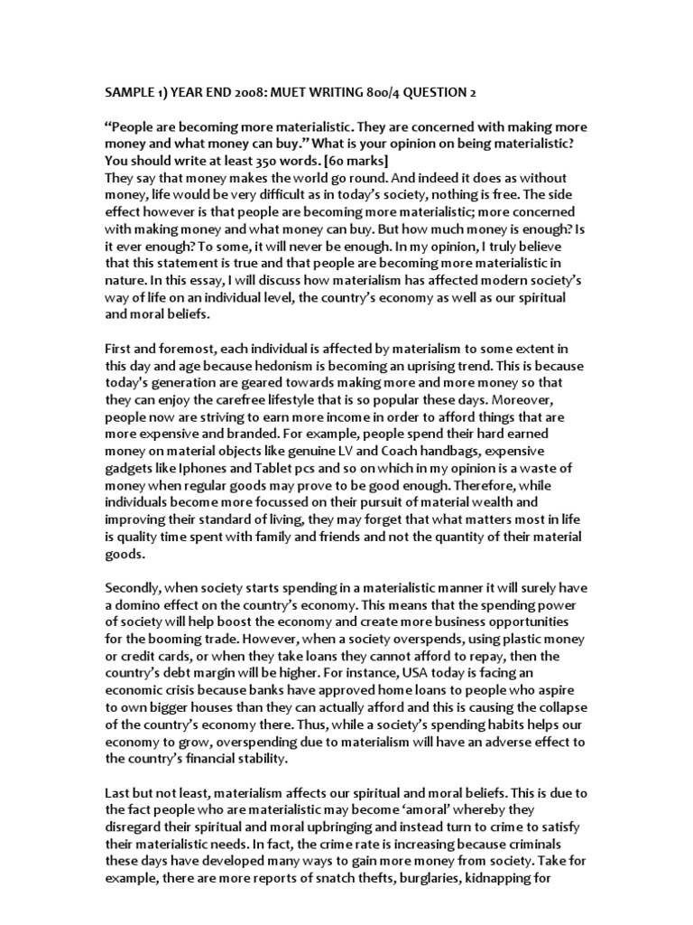 Related : Muet Writing Past Year Question / Muet 2020 Listening Test Guide Tips / They are concerned with making more money and what money can buy..